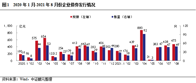 2021年8月,企業(yè)債券發(fā)行49只,發(fā)行規(guī)模475.10億元,與上年同期相比分別增長16.7%和15.0%;與上月相比,發(fā)行數(shù)量環(huán)比增長4.3%,發(fā)行規(guī)模環(huán)比增長8.5%。2021年1-8月份,企業(yè)債券累計發(fā)行326只,發(fā)行規(guī)模475.10億元,較上年同期分別增長48.9%和24.4%。