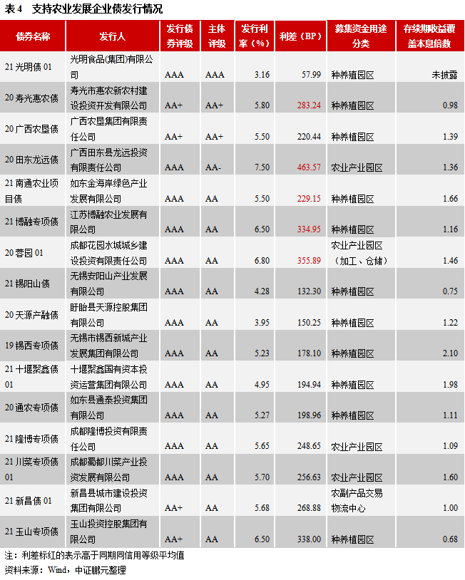 支農(nóng)產(chǎn)業(yè)發(fā)展,相關(guān)企業(yè)債存在發(fā)行優(yōu)勢
