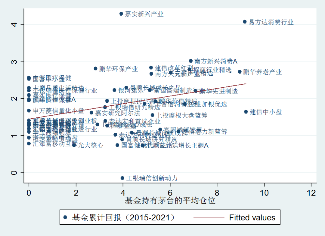 圖2 股票基金持有茅臺的平均倉位與基金業績