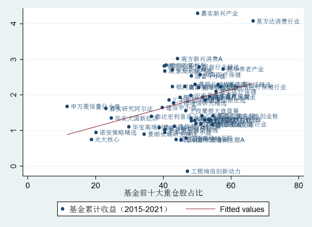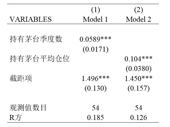 圖3 公募股票基金“含茅率”與基金業績的回歸分析