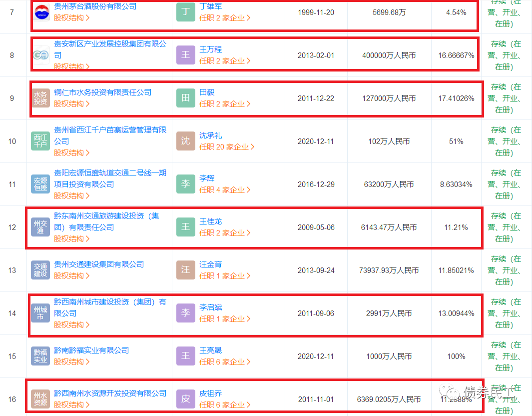 根據公開信息,除了黔西南州城市建設投資(集團)有限公司之外,貴州國資公司已經參股貴州省多家市級城投公司: