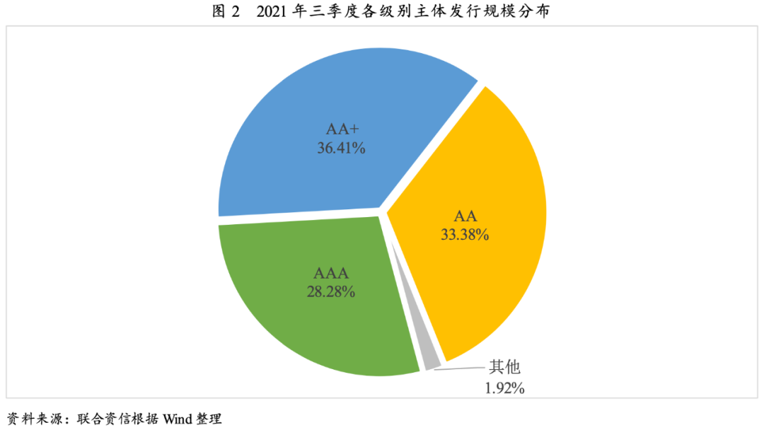 三季度房地產(chǎn)等行業(yè)風(fēng)險(xiǎn)事件頻發(fā),疊加監(jiān)管政策收緊的持續(xù)影響,投資者風(fēng)險(xiǎn)偏好持續(xù)降低,新發(fā)行城投債的級別中樞持續(xù)上移,AAA級及AA+級城投債發(fā)行規(guī)模占比持續(xù)提升。