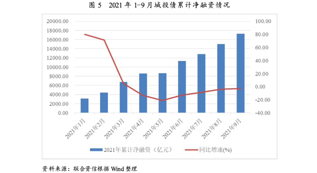 三季度城投債凈融資規(guī)模5941.87億元,環(huán)比大幅增長52.15%,同比增長25.64%。2021年前三季度,城投債凈融資規(guī)模17256.06億元,同比下降2.64%,降幅較上半年(-12.93%)明顯縮小。