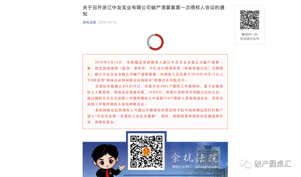 原標(biāo)題: 破產(chǎn)實務(wù)|“釘釘”平臺網(wǎng)絡(luò)債權(quán)人會議實務(wù)操作體驗