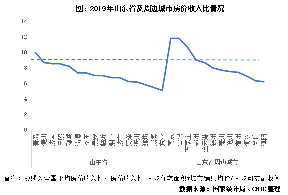 省內(nèi)城市除青島外,房?jī)r(jià)收入比均低于全國(guó)平均,居民購(gòu)房壓力小。從房?jī)r(jià)收入比來看,省內(nèi)只有青島一城房?jī)r(jià)收入比達(dá)9.99,高于全國(guó)平均。其余城市房?jī)r(jià)收入比較低,居民購(gòu)房壓力小。即便是省會(huì)城市濟(jì)南,購(gòu)房壓力遠(yuǎn)不及周邊省會(huì)城市南京、合肥和石家莊,甚至低于連云港這樣的三四線城市。