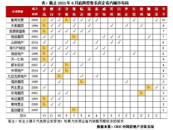 1、魯系房企規(guī)模普遍偏小,依然有較強(qiáng)地緣性