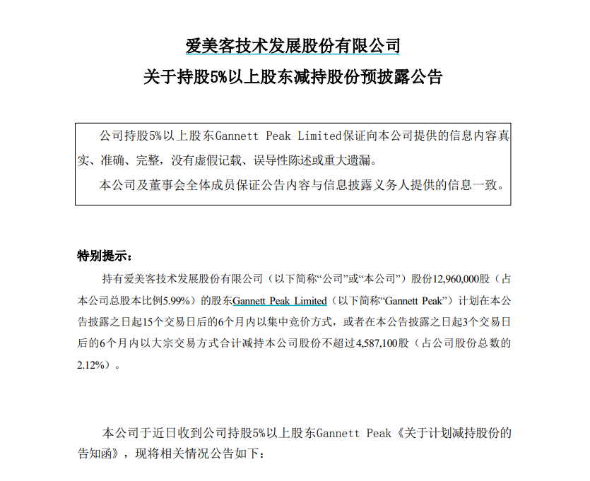10月8日,愛美客發(fā)布持股5%以上股東擬減持公告,公告顯示, 持有愛美客1296萬股(占公司總股本比例為5.99%)的股東Gannett Peak Limited計(jì)劃在公告披露之日起15個(gè)交易日后的6個(gè)月內(nèi)以集中競價(jià)方式,或者在公告披露之日起3個(gè)交易日后的6個(gè)月內(nèi)以大宗交易方式合計(jì)減持公司股份不超過約458.7萬股(占公司股份總數(shù)的2.12%)。若按照當(dāng)日股價(jià)計(jì)算,這部分總額超過27億人民幣。