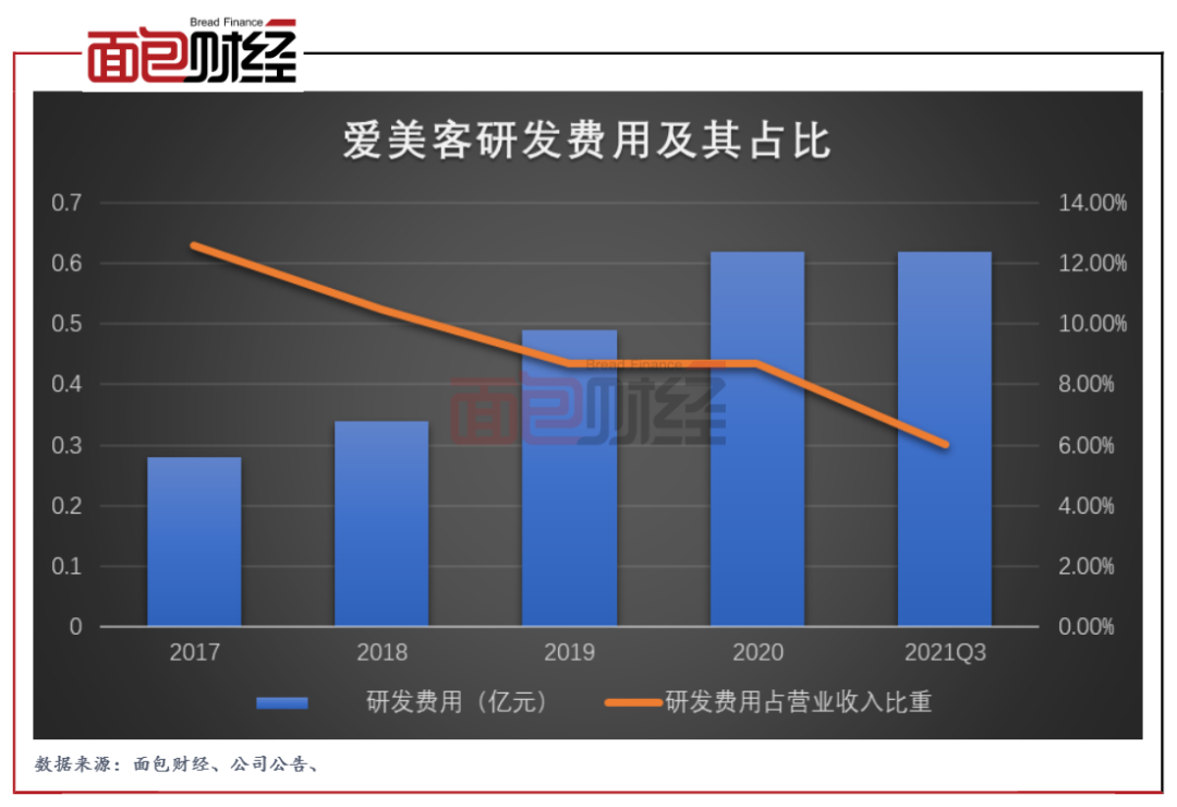 圖3:2017-2021Q3愛美客研發(fā)費(fèi)用及其占比