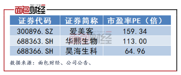 作為A股醫(yī)美三劍客,昊海生科和華熙生物PE僅在113倍以及64倍左右,愛美客的PE遠(yuǎn)大于同行其他公司。