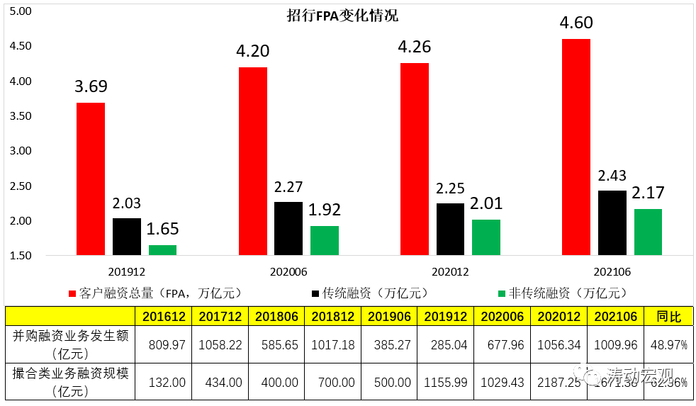 3、具體來看,招行2020年提出了客戶融資總量(FPA)的概念,并將FPA進一步劃分為傳統融資和非傳統融資兩類。其中,傳統融資方式包括一般性貸款、票據貼現、承兌、信用證、融資性保函與非融資性保函等幾類,而非傳統融資方式則包括資產經營、自營非標、融資性理財、承銷、撮合交易、融資租賃、跨境聯動融資、牽頭銀團貸款等八個部分。