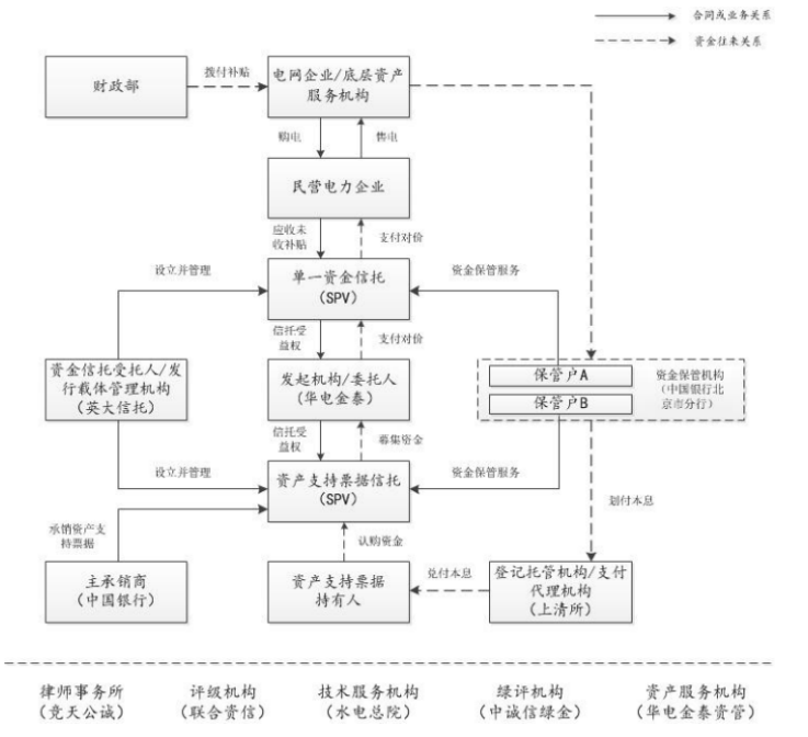 從名字中就能感受到項目的獨特之處,目前市場上主要的國補ABN項目發起機構一般都是五大發電集團或旗下保理公司,而這一單的發起機構是華電金泰,這是一家經常作為并表ABN發起機構的公司,而且與融資主體股權上沒什么關聯關系。