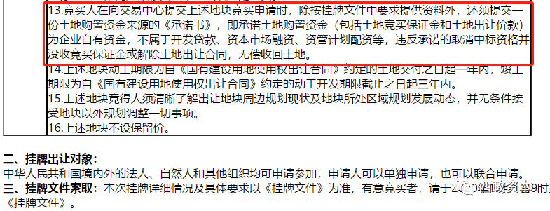 根據目前的招拍掛政策,大部分地區的國土、自然資源等部門都會在招拍掛公告中明確要求競拍人的資金必須為自有資金,其中個別地區的國土部門還會穿透核查競拍主體的資金來源。從實務的情況來看,各地對競拍主體自有資金的核查要求差異比較大,比如有的地方僅僅是形式核查或要求競拍主體提交《承諾函》即可,而有些城市則會穿透核查支付競拍保證金、土地款的項目公司的股東的性質,其中若股東名稱中含有資產管理、投資管理、基金、信托、金控等字樣的,則有可能被認定為拍地資金屬于融資類資金。以下為2020年11月20日《珠海市國有建設用地使用權網上掛牌出讓公告》的規定示例: