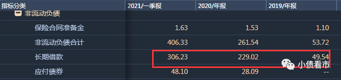 值得注意的是,近兩年來新希望的長期借款規模迅速增長,由2019年末不足50億翻了6倍增長至306.23億,債務負擔持續加重。