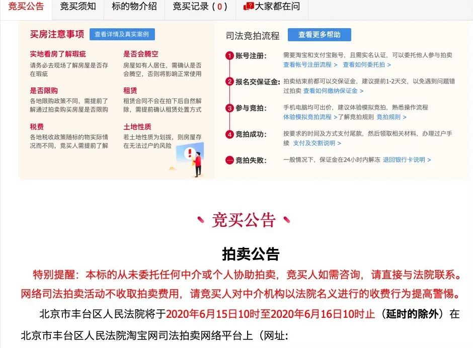 競買公告:這里主要介紹注意法院是否會負責騰空、有無租賃、土地性質(zhì)的問題;還有競拍流程可以參與“模擬競拍”來先嘗試;