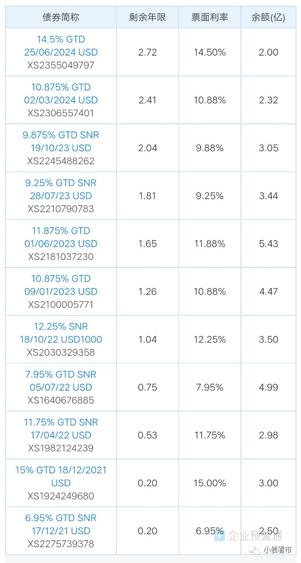《小債看市》統計,目前花樣年控股存續11只美元債,存續規模36.59億美元,其中有13.5億美元債將于一年內到期,其面臨短期集中兌付壓力較大。