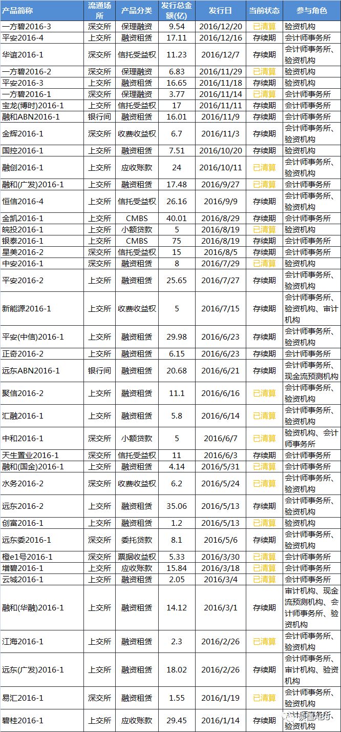 2016年全年,瑞華會計事務(wù)所一共參與了ABS項目40單,規(guī)模586.72億元,其中18單已到期清算。