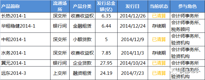 2014年全年,瑞華會計事務(wù)所一共參與了ABS項目6單,規(guī)模77.78億元,其中4單已到期清算。