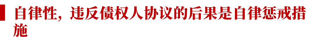 當然, 違反債權人協(xié)議的后果也不僅僅止于自律懲戒措施, 《金融機構債權人委員會工作規(guī)程》第十五條第二款進一步規(guī)定, 因上述情形造成嚴重后果的, 金融管理部門可以采取約談、向債委會成員機構總部通報等方式督促債委會成員機構規(guī)范行為; 用更直白的話說, 違反債權人協(xié)議, 除了有可能被自律懲戒外, 還有可能被銀保監(jiān)會、證監(jiān)會這些金融行政監(jiān)管機構約談。