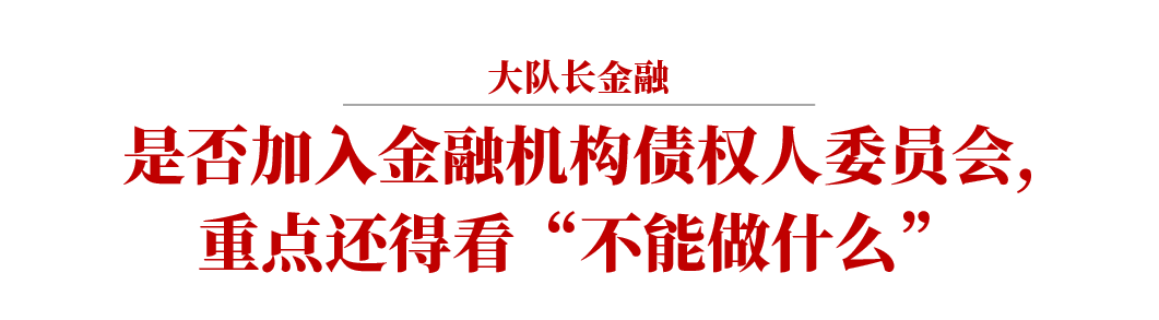 那么, 如果今天你的債權金額不大, 基本不可能成為金融機構債權人委員會的核心成員, 那么還要參加嗎? 對此, 我們在上文已經(jīng)分析了, 對于非核心成員的成員機構, 其最主要的權利就是對于重組方案進行表決, 因此是否還要參加金融機構債權人委員會的判斷實質(zhì)就是要看加入債委會后, 是否還會對債權人的部分權利進行限制。