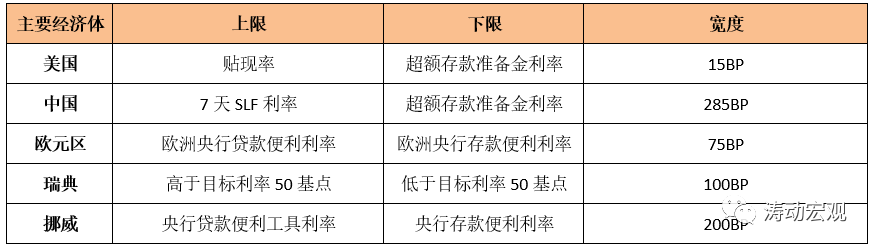 (2)2014年5月時(shí)任央行行長周小川率先提出“利率走廊”這個(gè)概念,但關(guān)于“利率走廊”的研究最早可追溯至上世紀(jì)90年代(其中以Kevin Clinton分別完成于1991年和1997年的兩篇論文為代表)。20世紀(jì)90年代以來,加拿大、歐元區(qū)、瑞典等經(jīng)濟(jì)體率先采用了“利率走廊”模式來調(diào)控利率,隨后美國、德國、法國、意大利、瑞典、瑞士、芬蘭、匈牙利、斯洛文尼亞以及印度、斯里蘭卡、納米比亞等經(jīng)濟(jì)體也采用了這一調(diào)控模式。