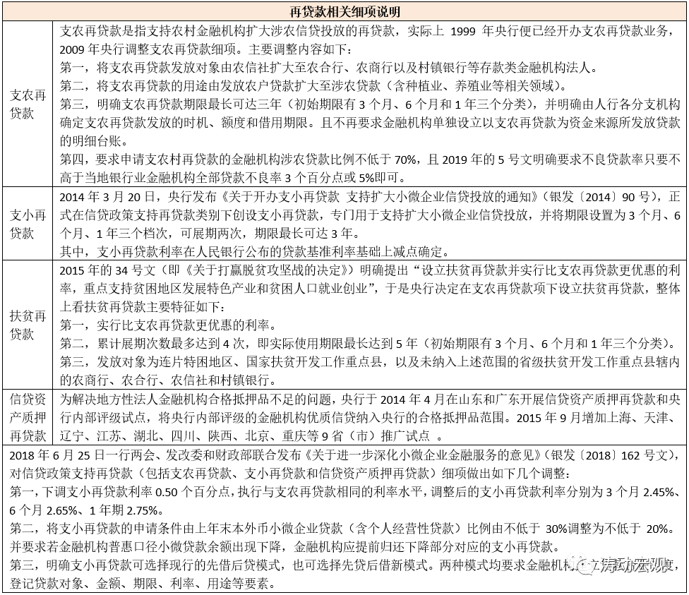 (4)MLF(Medium-term Lending Facility,簡稱中期借貸便利,亦特麻辣粉)與TMLF(Targeted Medium-term Lending Facility,簡稱定向中期借貸便利,亦稱特麻辣粉)均主要面向“三農(nóng)”、小微和民營企業(yè)貸款(新增),期限為3個(gè)月、6個(gè)月、1年(居多)。具體看,2014年9月與2018年12月,央行分別創(chuàng)設(shè)MLF和TMLF,從最初創(chuàng)設(shè)的目的來看,前者以支持小微企業(yè)和債轉(zhuǎn)股為主,后者則用以定向支持金融機(jī)構(gòu)向小微企業(yè)和民營企業(yè)發(fā)放貸款。