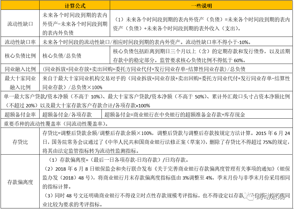 2、監(jiān)管指標(biāo)如下: