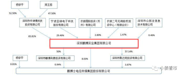 從股權結構上來看,鵬博士的控股股東是鵬博實業,持股比例為8.03%,公司實控人為楊學平,楊學平與陳玉茹為夫妻關系。