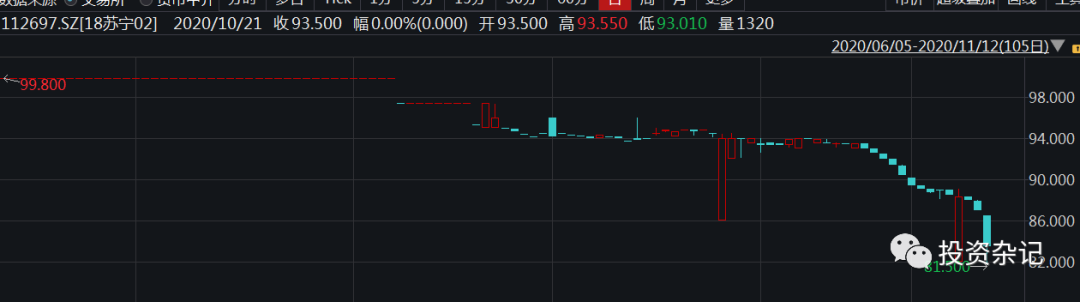 蘇寧易購這幾個債折扣力度也是挺大的,這是18蘇寧01的走勢圖: