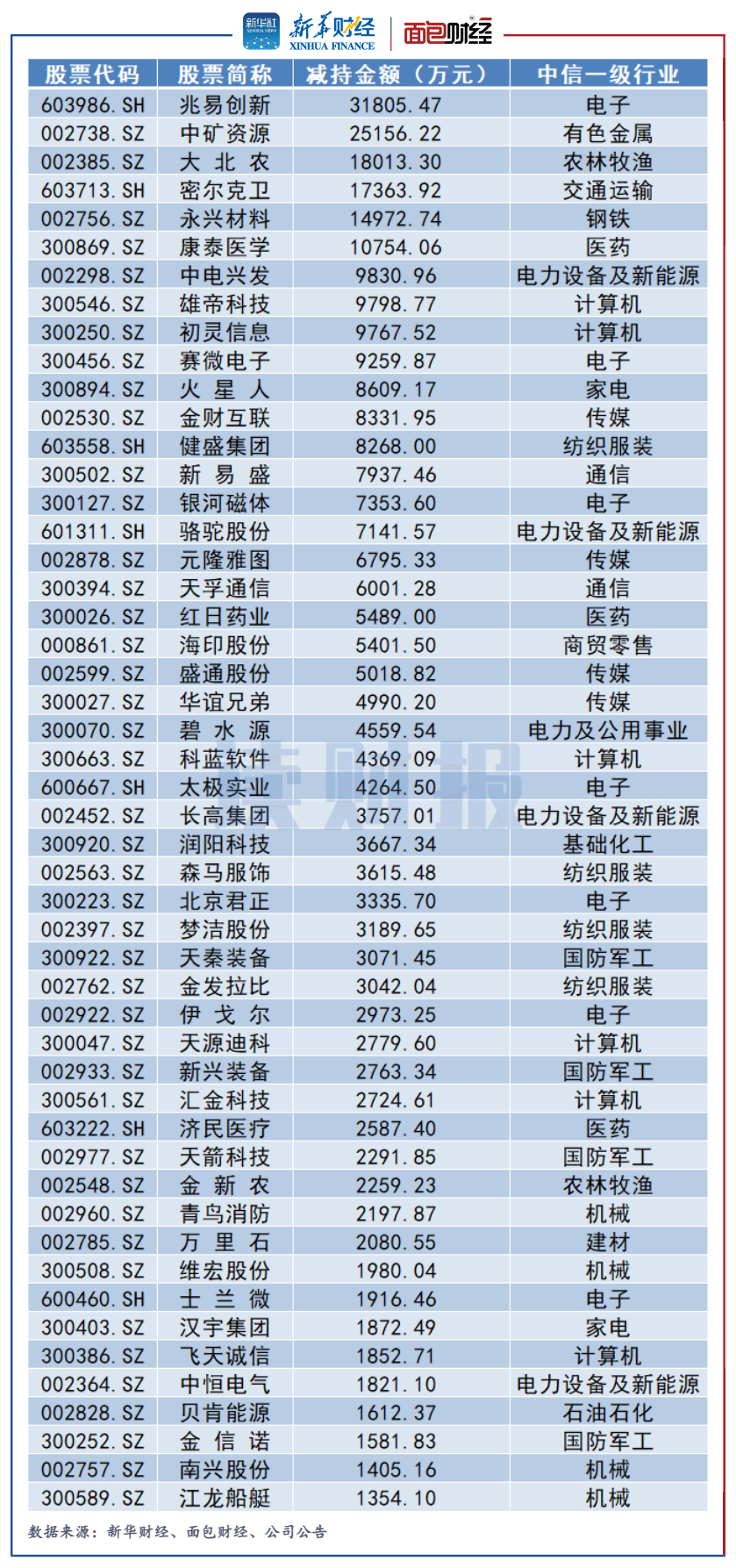 個股來看,兆易創(chuàng)新減持金額居首,中礦資源排在第二位,大北農(nóng)位于第三位。其中,中礦資源董事孫梅春在2月累計減持金額為2.52億元,大北農(nóng)董事邵根伙在2月份累計減持金額為1.8億元。另外,密爾克衛(wèi)、永興材料及康泰醫(yī)學(xué)減持金額同樣居前。數(shù)據(jù)顯示,密爾克衛(wèi)董事陳銀河在2月累計減持金額為1.74億元,永興材料2位董監(jiān)高在2月合計減持金額為1.5億元,康泰醫(yī)學(xué)3董事在2月合計減持金額為1.08億元。