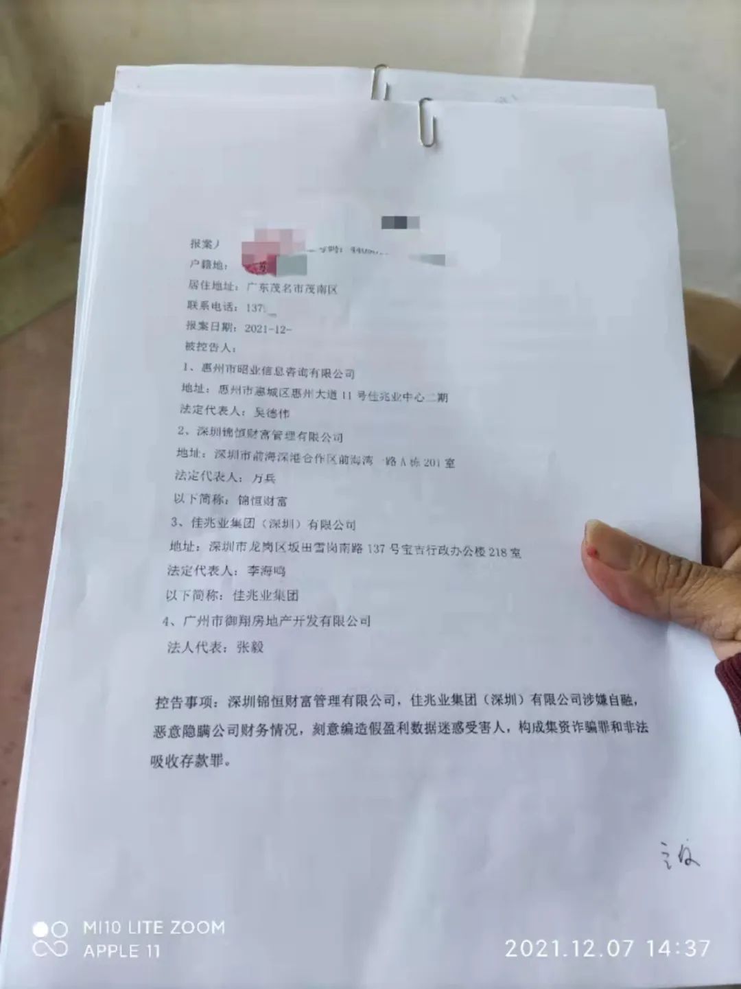 11月4日,500余名投資人心急火燎地趕到佳兆業(yè)公司總部討要說法。錦恒財富的年利率在8%-13%之間,“它說是理財產(chǎn)品,其實底層資產(chǎn)都是公司的房產(chǎn)項目?!蓖跸壬鷮P凰網(wǎng)《風財訊》坦誠,其實很多人都知道是怎么回事,形勢好的時候,拿回本金都沒有問題,只是誰也沒想到,會是現(xiàn)在這樣的情況。