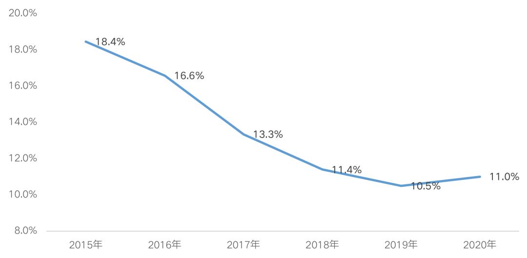 CRIC重點監測的80家房企中,共有52家房企披露了2020年存貨明細,據統計52家重點監測房企的現房庫存總量為9570億元,相比2019年上升了21.8%,增速明顯領先存貨總量增幅。企業現房庫存占比也由2019年的10.48%上升至2020年的11.00%,終結了持續4年的下降趨勢,首次回升。