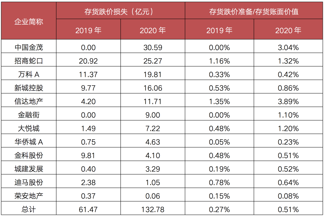 表:樣本房企2019、2020年存貨跌價損失及