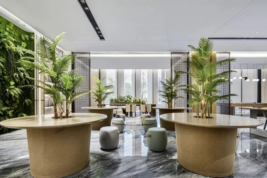 大堂門廳打造:大堂是客戶進(jìn)入項(xiàng)目的第一印象區(qū),方隅十分看重這一區(qū)域的品質(zhì)感,會(huì)展項(xiàng)目的大堂有大理石地面,大篇幅的綠植墻面,同時(shí)配有會(huì)客區(qū)、臺(tái)球廳、會(huì)議室等功能區(qū)隔分明的公區(qū)。