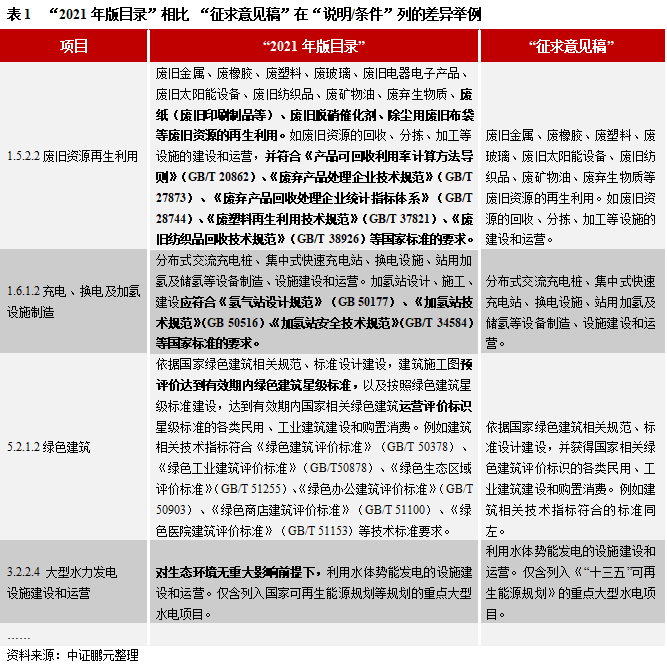 “2021年版目錄”與征求意見(jiàn)稿在一級(jí)、二級(jí)、三級(jí)、四級(jí)分類(lèi)上保持一致,差異體現(xiàn)在項(xiàng)目的“說(shuō)明/條件”,“2021年版目錄”在部分項(xiàng)目的“說(shuō)明/條件”列更加具體細(xì)化了項(xiàng)目的要求,一方面進(jìn)一步增加目錄的可操作性,另一方面也提高了部分項(xiàng)目的相關(guān)標(biāo)準(zhǔn)。在具體操作時(shí),一定要仔細(xì)閱讀“2021年版目錄” 中各項(xiàng)目“說(shuō)明/條件”列的相關(guān)要求。