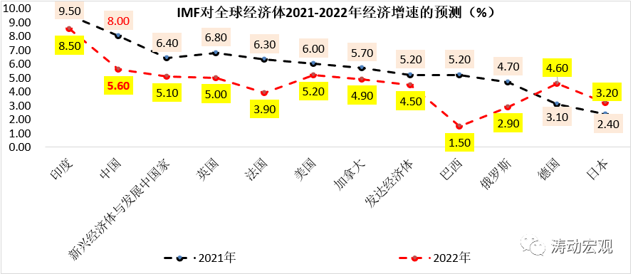 需要說明的是,因疫情階段的差異,中國、美國以及其它新興經(jīng)濟(jì)體之間的經(jīng)濟(jì)周期呈現(xiàn)典型的錯(cuò)位特征,中國經(jīng)濟(jì)于疫情之后率先復(fù)蘇、但亦率先回落并趨于下行,美國經(jīng)濟(jì)在復(fù)蘇之后預(yù)計(jì)將于2022年下半年開始重新進(jìn)入下行通道、其它新興經(jīng)濟(jì)體可能自2023年開始經(jīng)濟(jì)在反彈后重新趨于下行,屆時(shí)主要經(jīng)濟(jì)體之間的錯(cuò)位將會(huì)繼續(xù)呈現(xiàn),只不過屆時(shí)中國的主導(dǎo)地位則會(huì)重新趨于上升。