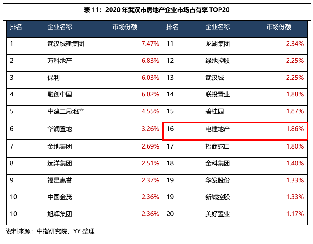 從市場競爭格局來看,2020年武漢城建集團、萬科和保利市場占有率位居前三,而電建地產排名第16位,市場份額為1.86%。在全面壓降住宅容積率、樓市競爭不斷加劇、政策由寬從嚴的大背景下,面對連續兩年的業績大幅下挫,南國置業未來想在大本營武漢保有一席之地也并非易事。