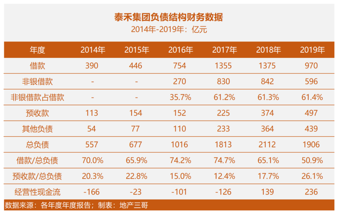 2018年末,非銀融資占借款比53%,和泰禾接近。