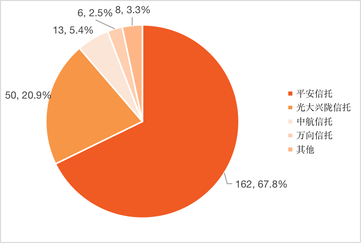 智慧芽數據顯示,截至2021年11月底,國內有12家信托公司公開披露了239件專利。其中,平安信托專利申請量多達162件,占整個信托行業的67.8%;其次是光大興隴信托和中航信托,專利申請量分別為50件和13件。