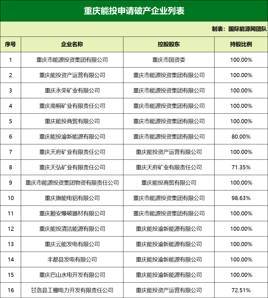 最近幾天, 重慶能源集團等16家企業(yè)申請破產(chǎn)重整的消息刷屏了網(wǎng)絡(luò)。公開資料顯示,除重慶能投外,其他15家公司均為重慶能投的控股子公司。