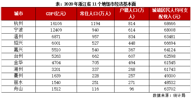 據(jù)七普數(shù)據(jù)顯示,2020年浙江省常住人口6457萬人,較六普凈增長1014萬人,僅次于廣東省,高居全國第二位。其中,杭州、寧波和溫州常住人口都在1000萬人左右,金華、臺州、嘉興和紹興同樣突破500萬人。