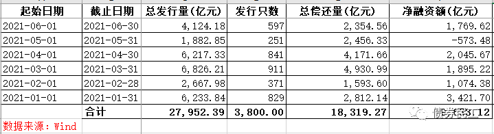 但是如果從城投公司的債券凈融資數據來看,2021年上半年凈融資金額為9,633.12億元,這個凈融資金額其實真的是很高了,超出了債券民工的預料 。(本文分析數據均來自于wind資訊,因為城投公司及信用債券的統計口徑有所差異,最終數據可能存在差別)。