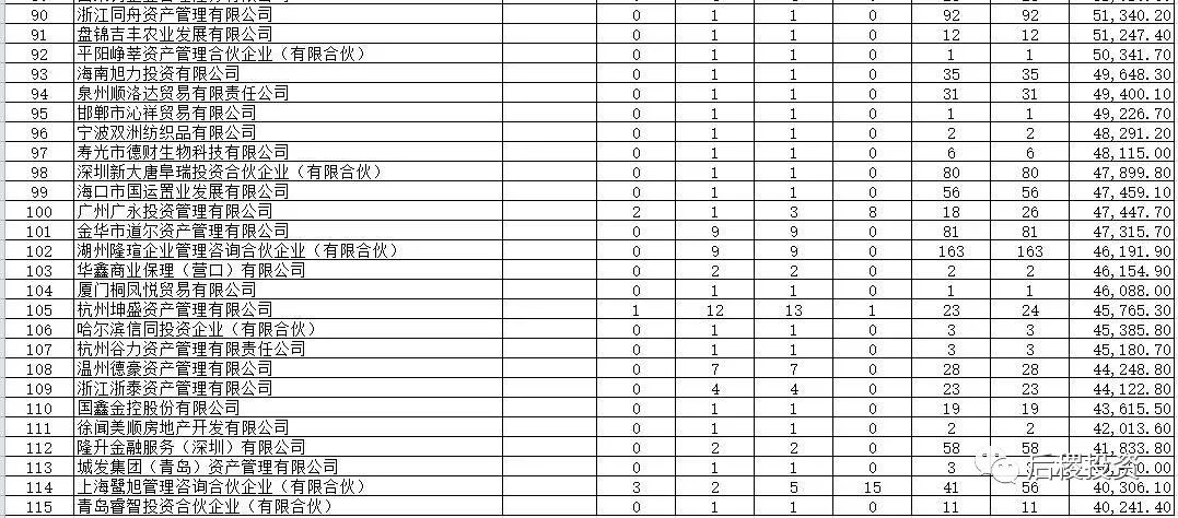 浙江、江蘇和廣東的二級機構出讓戶數表現基本一致。貴州的戶數特別高是因為有一筆成交記錄中,有個人債權2000多戶,河北、河南和新疆的戶數較高其中也有資產包性質的原因。