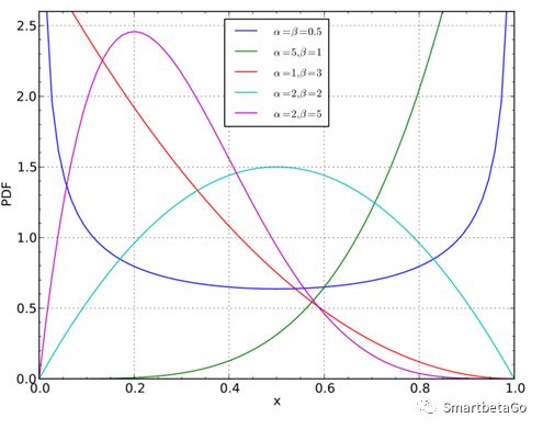 Beta分布的形狀隨著兩個參數的變化而呈現很大的差異,也能很好地擬合偏峰厚尾的情況。