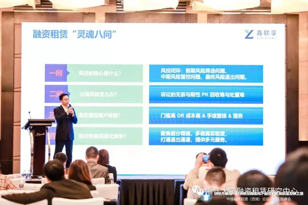 第一,風(fēng)控的核心是什么?前期風(fēng)險(xiǎn)篩選問(wèn)題、中期風(fēng)險(xiǎn)管控問(wèn)題、最終風(fēng)險(xiǎn)退出問(wèn)題。第二,出現(xiàn)風(fēng)險(xiǎn)怎么辦?訴訟的無(wú)奈與剛性PK回收難與處置難。第三,是否重視客戶體驗(yàn)?門檻高或成本高疊加手續(xù)繁瑣和態(tài)度強(qiáng)勢(shì)。第四,如何突破同質(zhì)化競(jìng)爭(zhēng)?聚焦細(xì)分領(lǐng)域,多做真實(shí)租賃,打通退出通道,提供多元服務(wù)。第五,如何回歸租賃本源?租賃應(yīng)同時(shí)滿足出租人擁有物權(quán)并允許客戶退回。第六,中小企業(yè)融資難題誰(shuí)來(lái)解決?為什么是銀行做不了的事情?融資租賃能做好補(bǔ)充嗎?第七,融資租賃的天然優(yōu)勢(shì)在哪里?物權(quán)保障是天熱優(yōu)勢(shì),出現(xiàn)風(fēng)險(xiǎn)時(shí),租賃物可以快速變現(xiàn),并且能覆蓋未還租金。第八,行業(yè)發(fā)展的方向在哪里?客戶需求由買到租的變化,客戶經(jīng)營(yíng)靈活性的需要,提高資產(chǎn)流動(dòng)性要求、創(chuàng)新產(chǎn)品的出現(xiàn)。