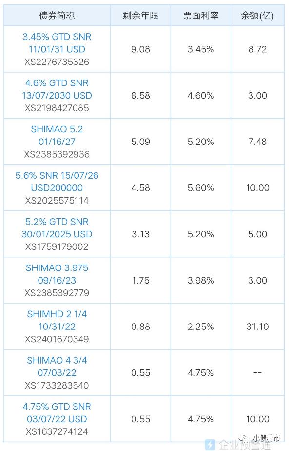 《小債看市》統(tǒng)計,目前世茂集團存續(xù)8只美元債,存續(xù)規(guī)模57.2億美元,其中將有41.1億美元債于一年內(nèi)到期,其面臨集中兌付壓力較大。
