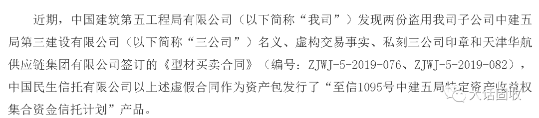 天津華航供應(yīng)鏈集團(tuán)有一筆以“中建五局三公司”為核心企業(yè)的應(yīng)收賬款