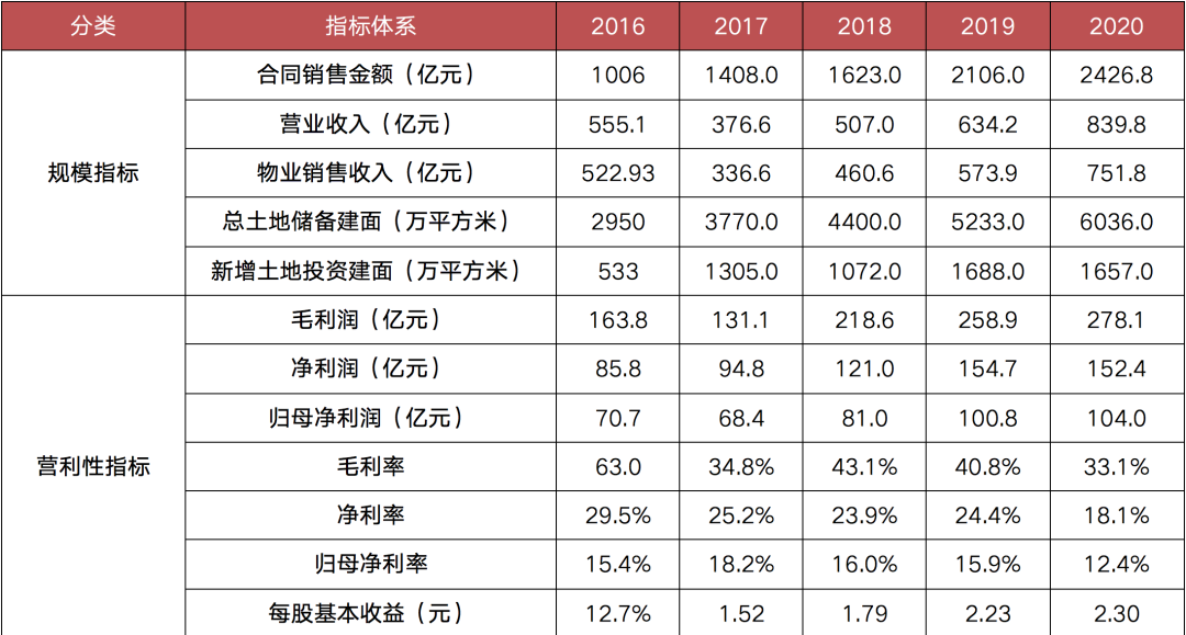 表:2017-2020年金地集團(tuán)財務(wù)指標(biāo)