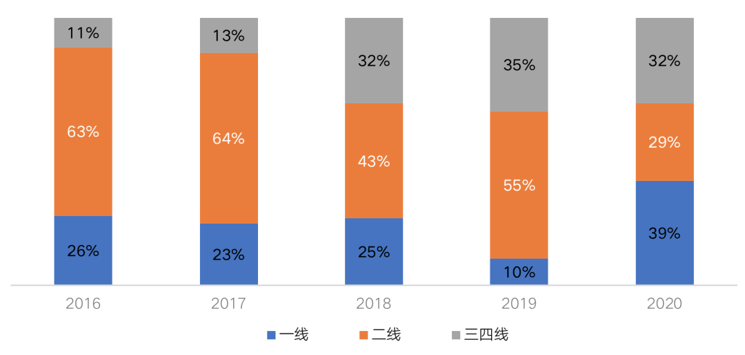 現(xiàn)在回頭復(fù)盤可以發(fā)現(xiàn),疫情期間,許多城市轉(zhuǎn)變供地策略,優(yōu)先供應(yīng)條件較好的土地,以刺激企業(yè)拿地積極性,穩(wěn)定整體市場。然而從成交情況來看,在土拍恢復(fù)的初期,不少企業(yè)并未意識到這波看漲行情,錯失了不少優(yōu)質(zhì)地塊。