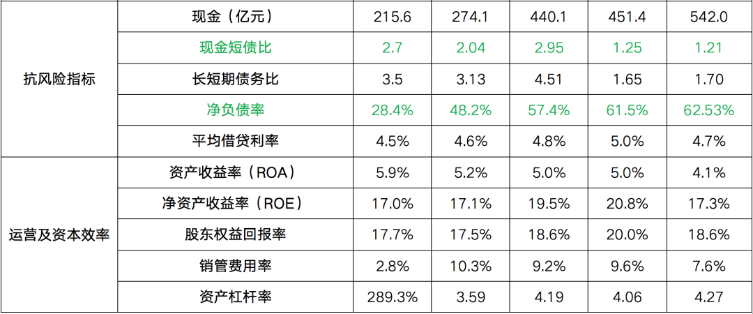 銷管費(fèi)用率=銷售及管理費(fèi)用/報告期內(nèi)操盤銷售金額;資產(chǎn)杠桿率=總資產(chǎn)/所有者權(quán)益合計