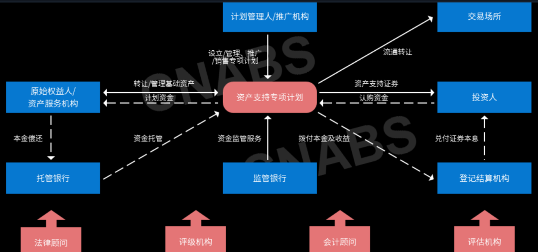 在銀行間債券市場(chǎng)發(fā)行資產(chǎn)證券化產(chǎn)品的為ABN(資產(chǎn)支持票據(jù)),在滬深證券交易所發(fā)行的資產(chǎn)證券化產(chǎn)品為ABS(資產(chǎn)支持專項(xiàng)計(jì)劃)。